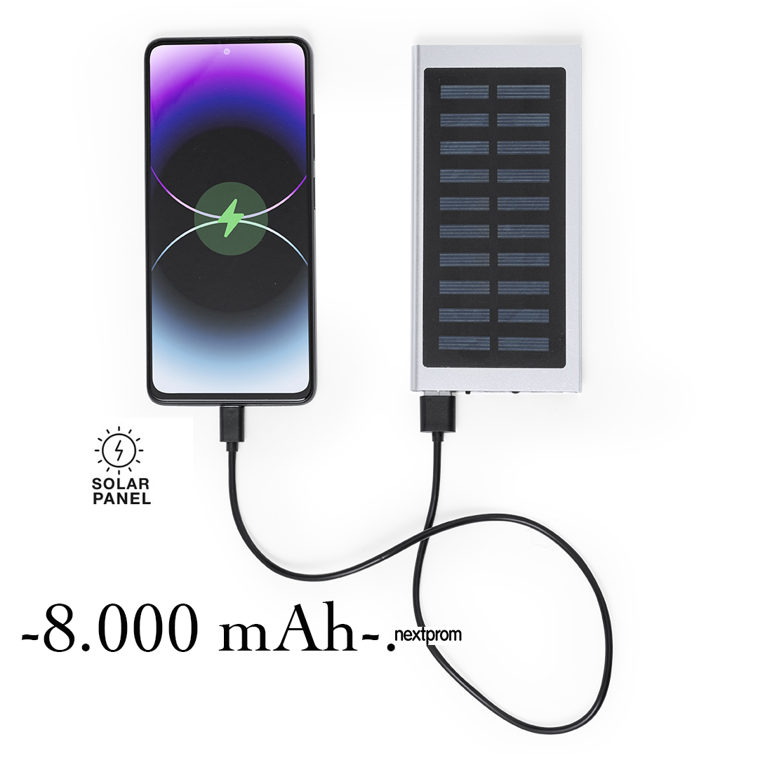 - Batería solar potente con gran capacidad de carga -8.000 mAh-.