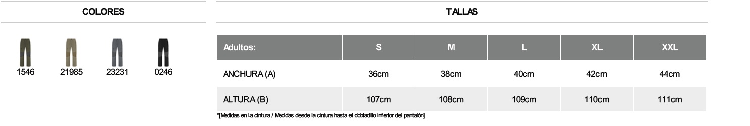 100% nailon cuadrillé. Refuerzos rodillas: 93% nailon / 7% elastano.