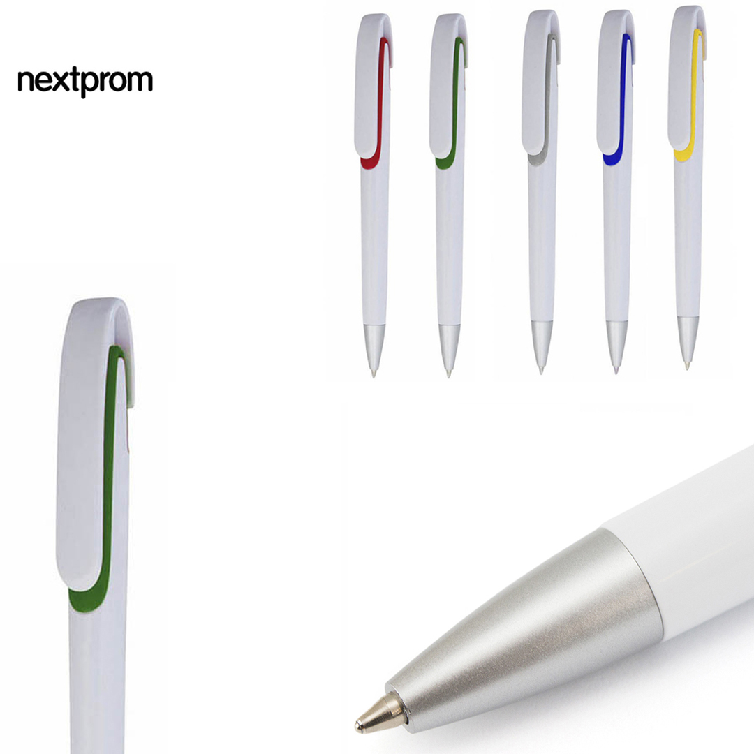 El fondo blanco es ideal para una visible personalización, ideal para destacar la impresión garantizando una impresión nítida, además el detalle de color del bolígrafo conjunta la imagen corporativa del logotipo o marca.