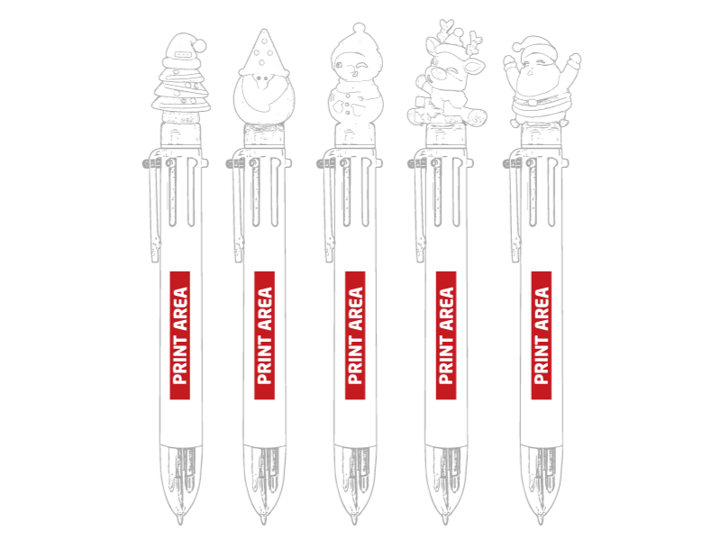 Espacio de impresión de los bolígrafos multicolores navidad: 45,00 mm x 7,00 mm