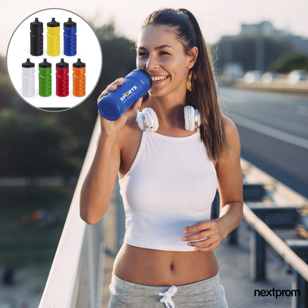 Botellas deporte de plástico, no pesa ni se rompe.