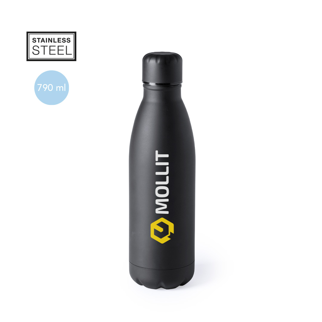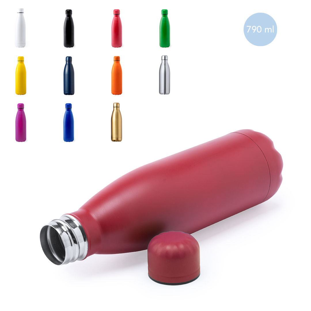 - Botellas rellenables con tapón de rosca fabricadas en acero inoxidable