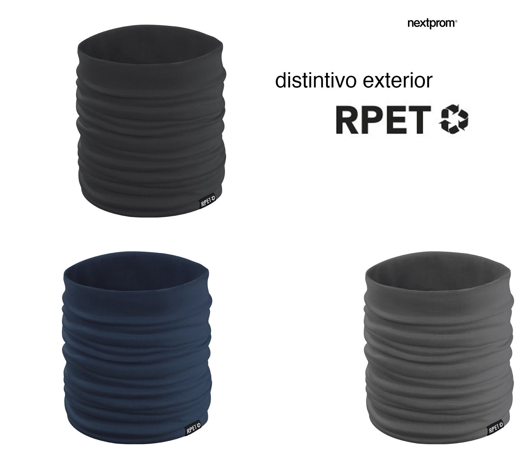 - Bragas de cuello ecológicas, fabricadas en suave poliéster elástico RPET, elaborado a partir de plástico reciclado para así fomentar la reutilización de residuos plásticos y contribuir a la sostenibilidad del planeta.