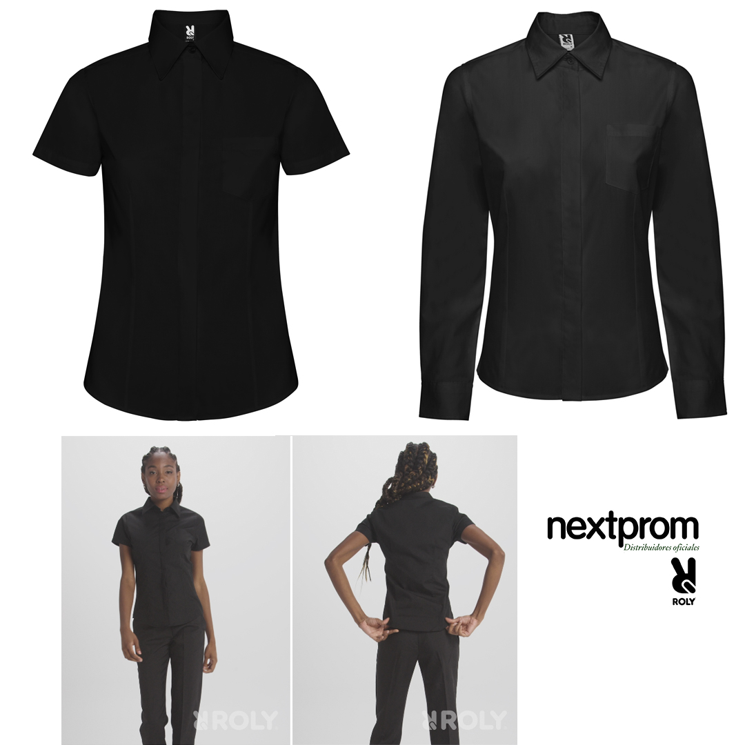 Camisas sofia de Roly color negro, cómodas y elegantes para uniformes y eventos.