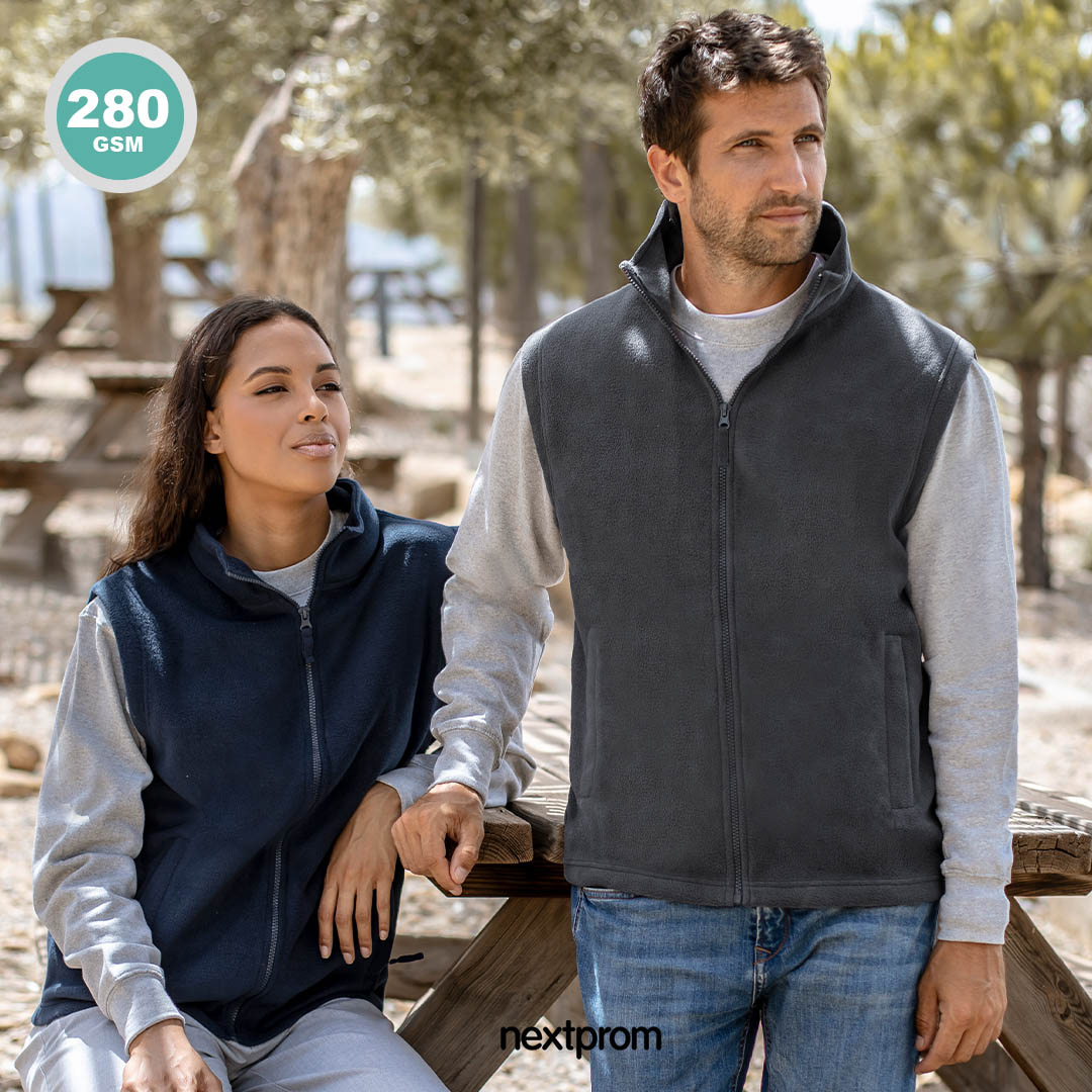 - Chaleco polar grueso fabricado en en cálido y suave polar fleece de 280 gramos con tratamiento anti-pilling, disponible en distintos colores.