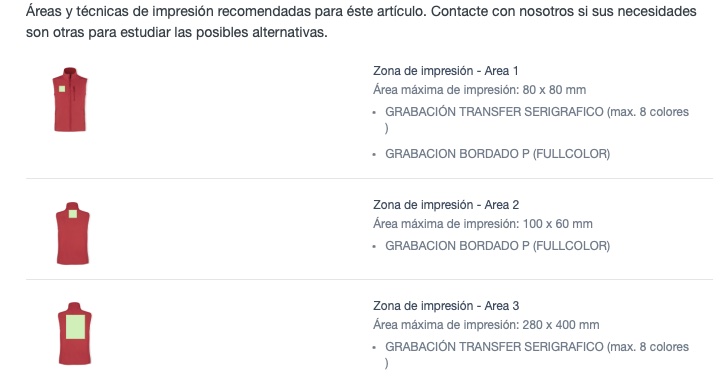 Facilitamos información de las técnicas de personalización de estos chalecos.