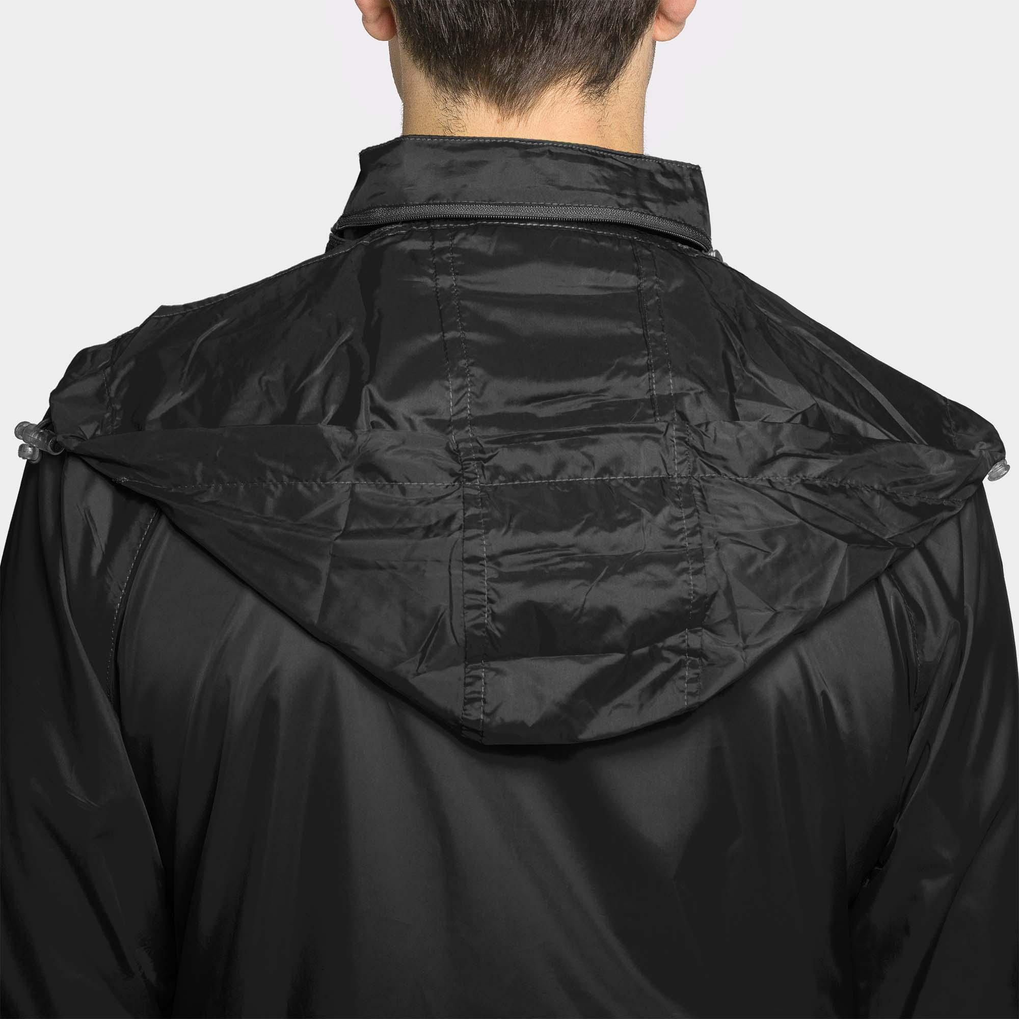 6.- Bolsillo en la espalda para guardar la chaqueta a modo de bolsa.