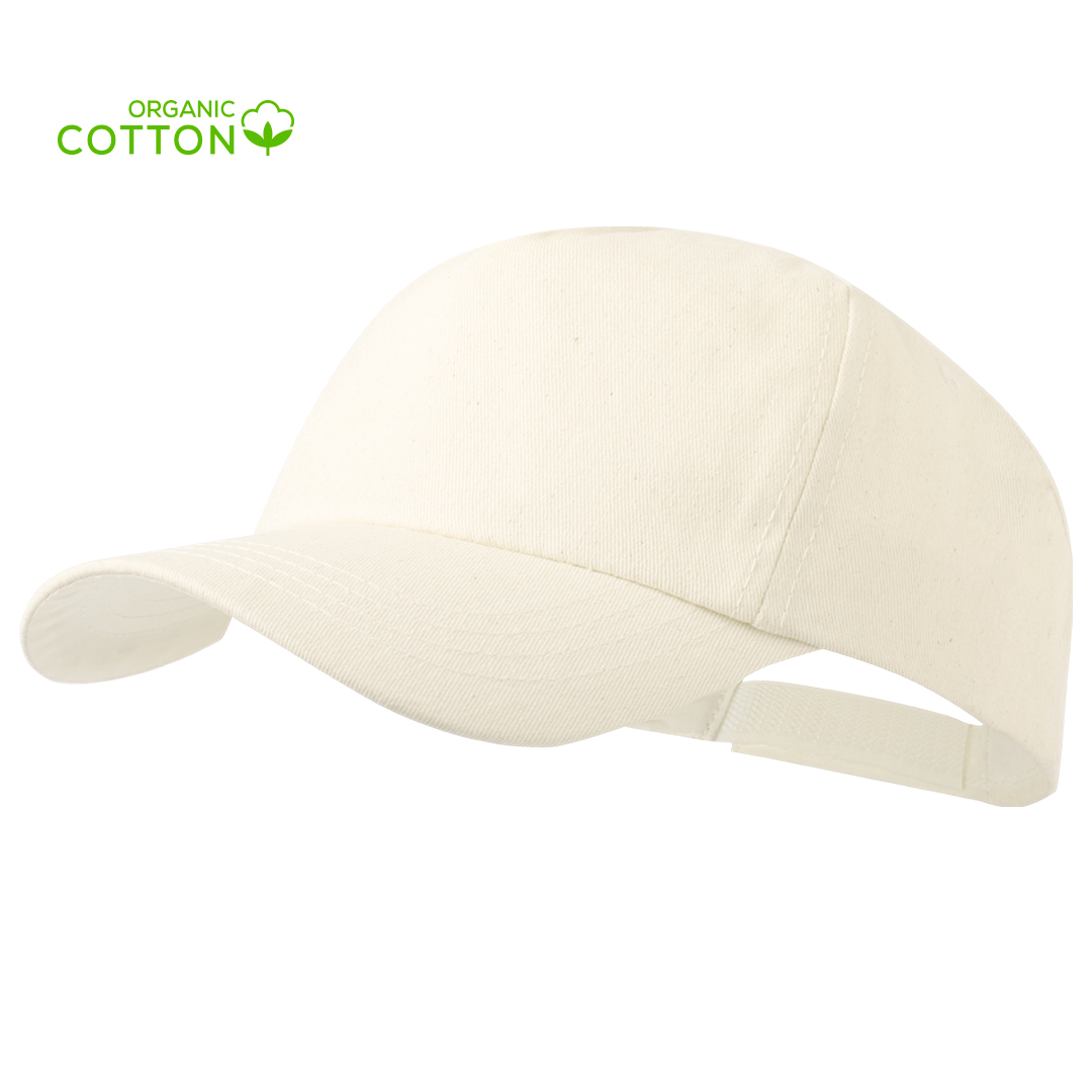 Gorras de algodón natural Zonner: Algodón orgánico de suave acabado crudo con cierre ajustable de velcro y orificios de ventilación bordados, con distintivo orgánico en etiqueta. Diseño de 5 paneles para facilitar la personalización en la parte frontal de la gorra.
