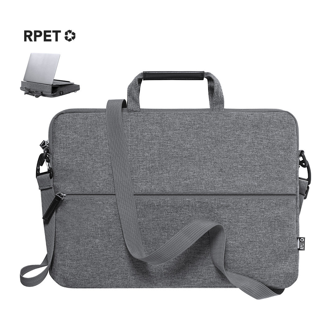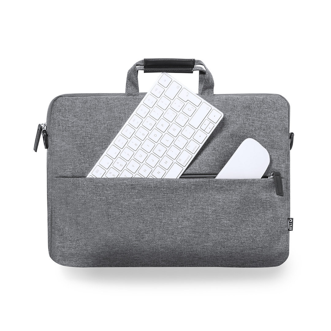 Portadocumentos de línea nature y en resistente 300D RPET efecto melange, elaborado a partir de plástico reciclado, para así fomentar la reutilización de residuos plásticos y contribuir a la sostenibilidad del planeta.