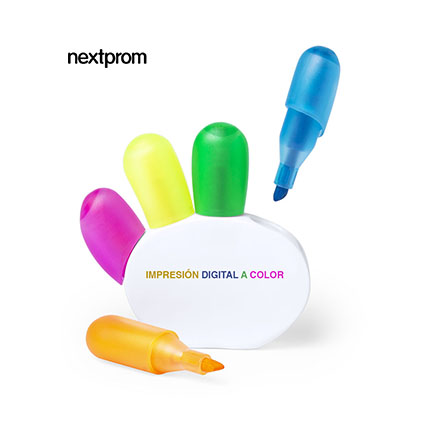 - Marcadores fluorescentes de diferentes colores con soporte personalizable