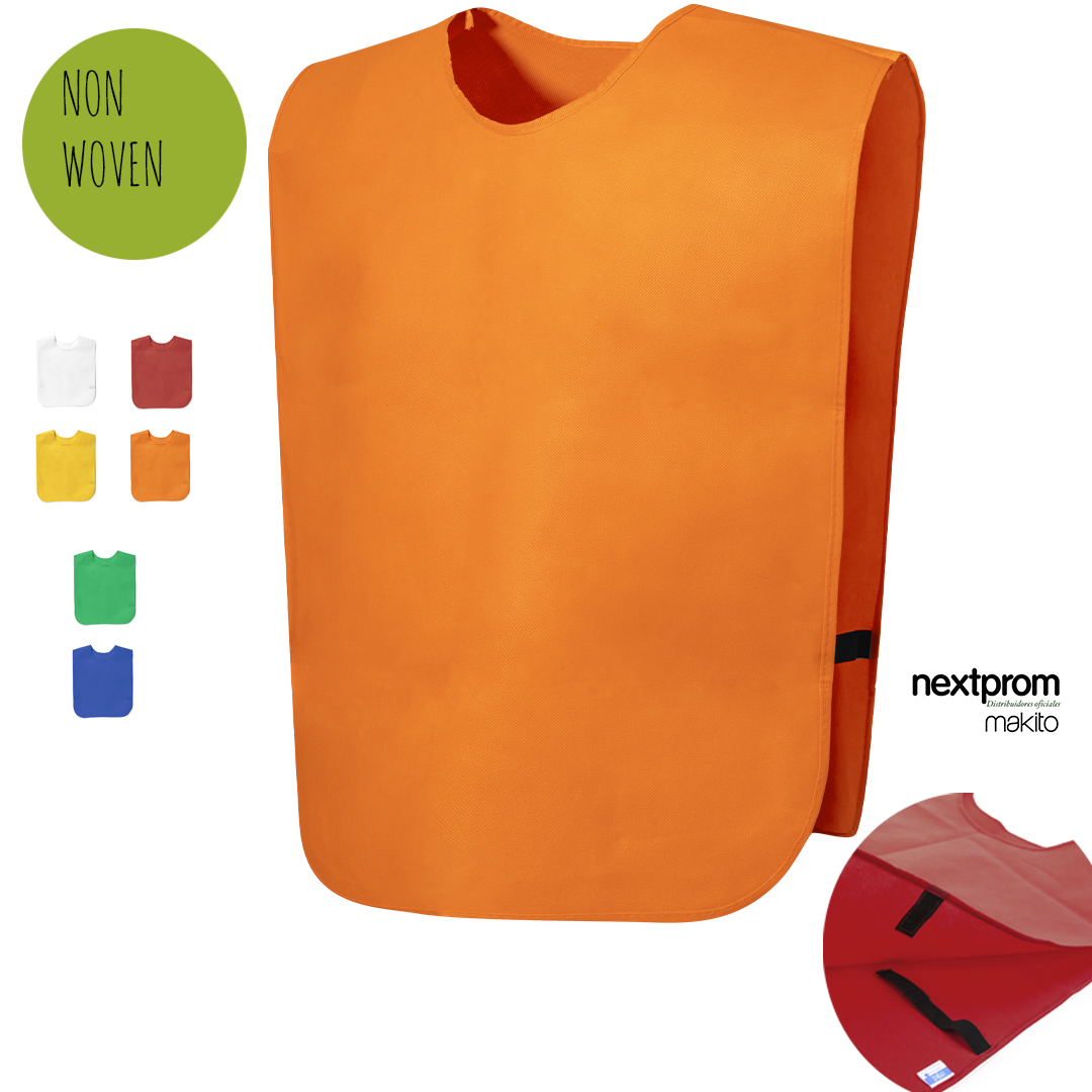 El material Non-woven se recomienda imprimir en serigrafía a un sola tinta, se pueden estampar las dos caras del peto, artículo económico para personalizar con tu identidad, frase o logotipo.
