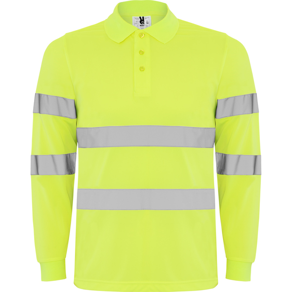 - Polos manga larga alta visibilidad fabricado en poliéster piqué de 170 gramos