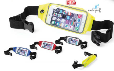 - Riñonera táctil de alta calidad y resistente a las salpicaduras de agua en lycra de variados colores.